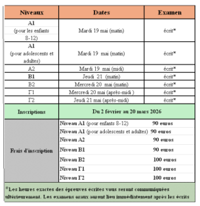 Pour l’année 2026, les examens de certification auront lieu les 19, 20 et 21 mai 2026.